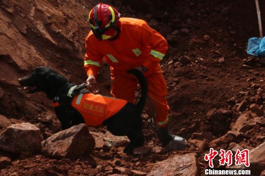 图为消防官兵带领搜救犬在现场救援昭通市消防支队供图