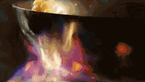 食材在翻勺时从锅体自然内翻,