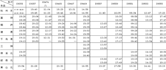 杭黄高铁杭州往黄山方向临时时刻表(2018.12.25——2019.1.4)
