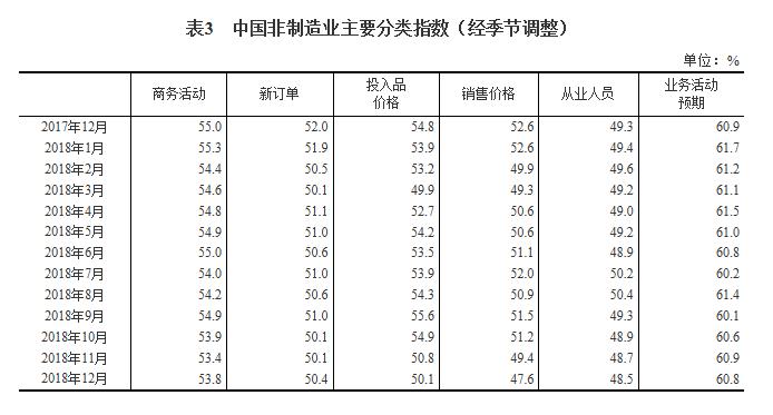 2018年12月份,中国非制造业商务活动指数为53.8%,比上月上升0.4个百分点,表明非制造业扩张有所加快。