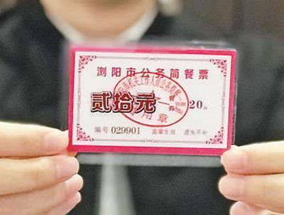 浏阳市公务简餐票照片。人民日报记者 王云娜 摄