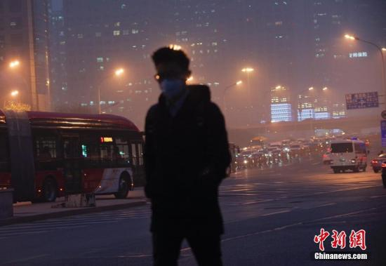 资料图:北京市民在重污染天气下出行。中新社记者 贾天勇 摄