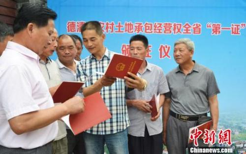资料图:村民代表领到了新的农村土地承包经营权证王力中提供