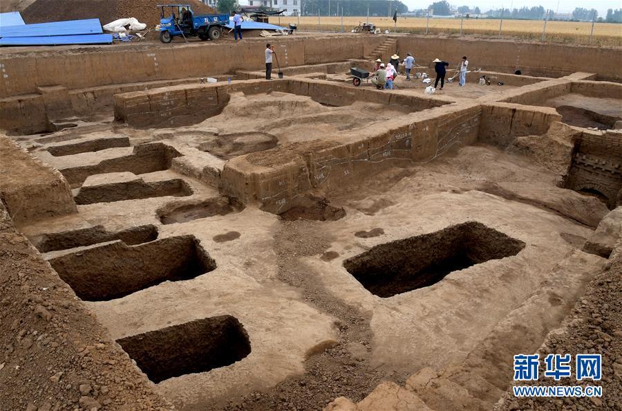 这是在河南省安阳市洹北商城发现的商代铸铜工匠家族墓地(6月5日无人机拍摄)。新华社记者 李安 摄
