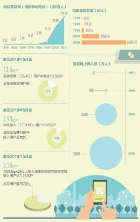 从单一种类到多种通信方式并存。2018年,我国电话普及率(包括移动电话)为125.29部/百人,固定互联网宽带接入用户40738万户,移动宽带用户130565万户,互联网上网人数从1997年的62万人迅速上升至82851万人。用得上、用得起、用得好的信息服务正在惠及更多百姓,亿万人民在共享互联网发展成果上拥有更多获得感、幸福感和安全感。