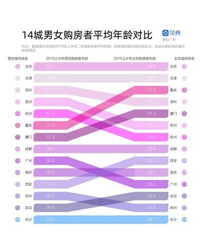 另一方面,由于女性在经济和思想上越来越独立,其在买房这件事上也越来越硬核。《报告》显示,在深圳、杭州、长沙等9个城市中,女性平均购房年龄均小于男性。其中长沙差距最大,相差1.4岁。