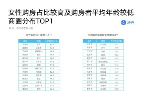 基于以上两个趋势,贝壳在各城市中找出了备受年轻人和女性青睐的商圈。