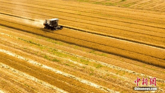 资料图:航拍麦收画面。宋广兴摄