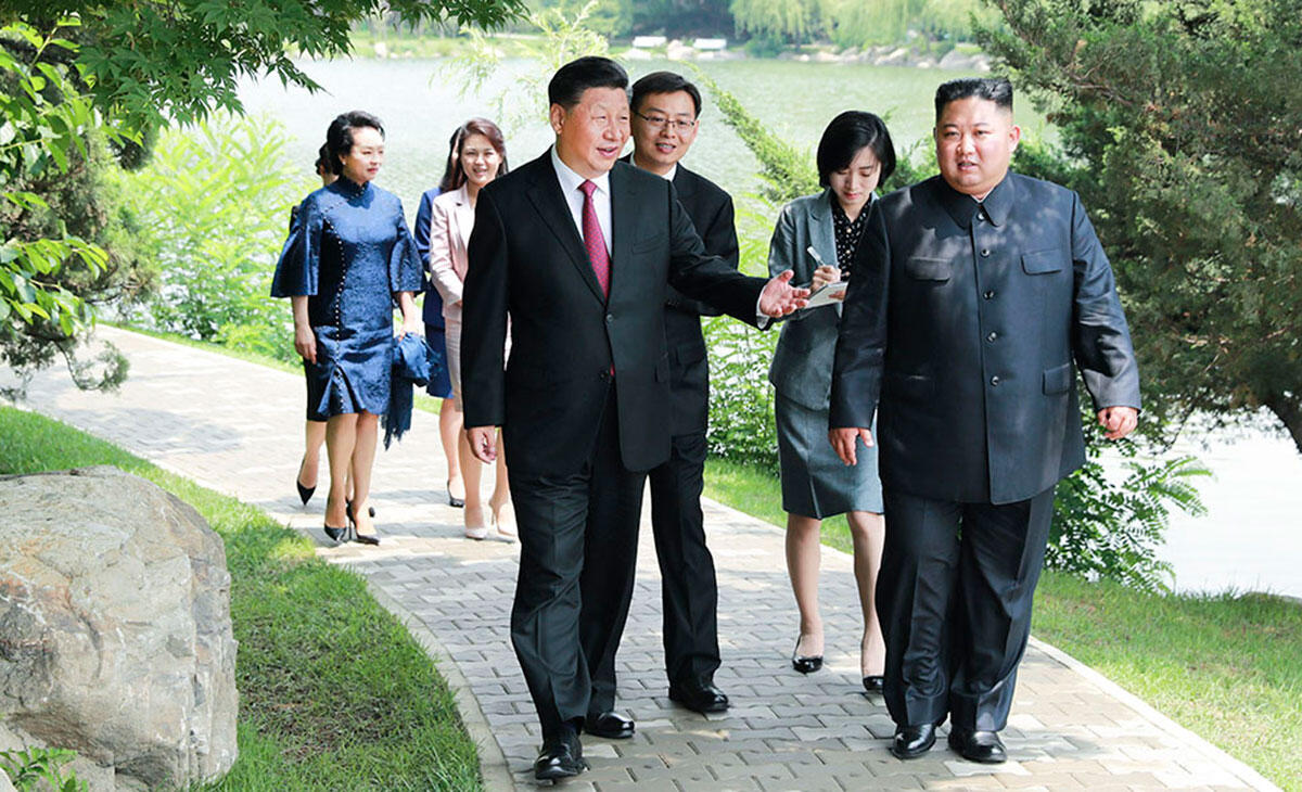 在朝鲜,金正恩全程陪同出席了习近平主席所有的访问活动,并为这次来访开创了多个“第一次”:第一次在锦绣山太阳宫广场接受致敬;三大乐团第一次同台献艺,专门为习近平主席此访创作排演大型团体操和文艺演出。习近平主席和夫人彭丽媛参谒中朝友谊塔,让中朝传统友谊在新时代的发展方向更加明确。