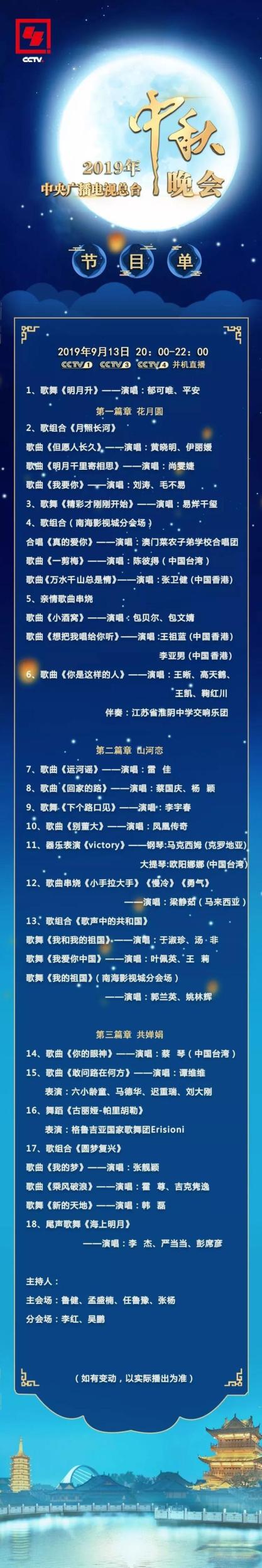 (原标题《2019年中央广播电视总台中秋晚会节目单来了!》)