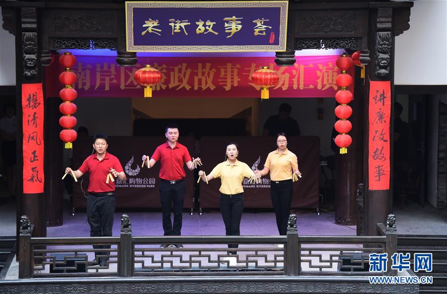宣讲人员在重庆市南岸区举办的廉政故事专场汇演活动上表演快板《反腐倡廉颂清风》(2019年4月27日摄)。新华社记者王全超摄