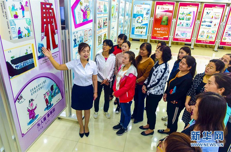 河北省阜城县纪委监委组织领导干部家属观看廉政教育漫画展(2018年9月19日摄)。新华社记者李晓果摄