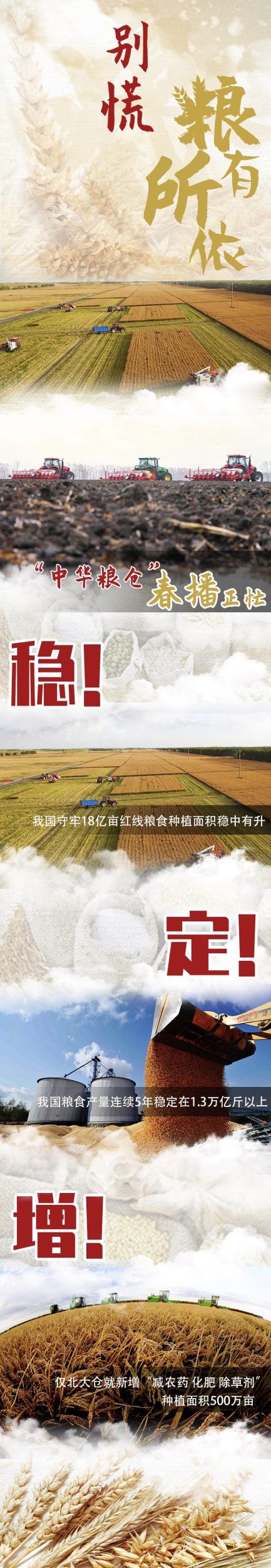 手里有粮,心里不慌。全民战“疫”,先稳饭碗。我国牢牢守住18亿亩耕地红线,粮食产量已连续5年稳定在1.3万亿斤以上,今年全国粮食种植意向面积稳中略增,保障粮食安全有底气。