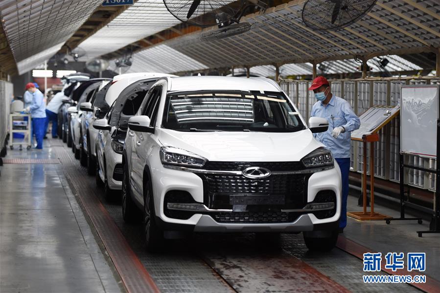 5月20日,在位于安徽省芜湖市的奇瑞汽车股份有限公司,工人在总装三车间内工作。 新华社发(周牧摄)