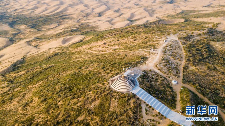 内蒙古鄂尔多斯达拉特旗银肯塔拉的防风固沙林(2018年7月31日摄,无人机照片)。新华社记者彭源摄