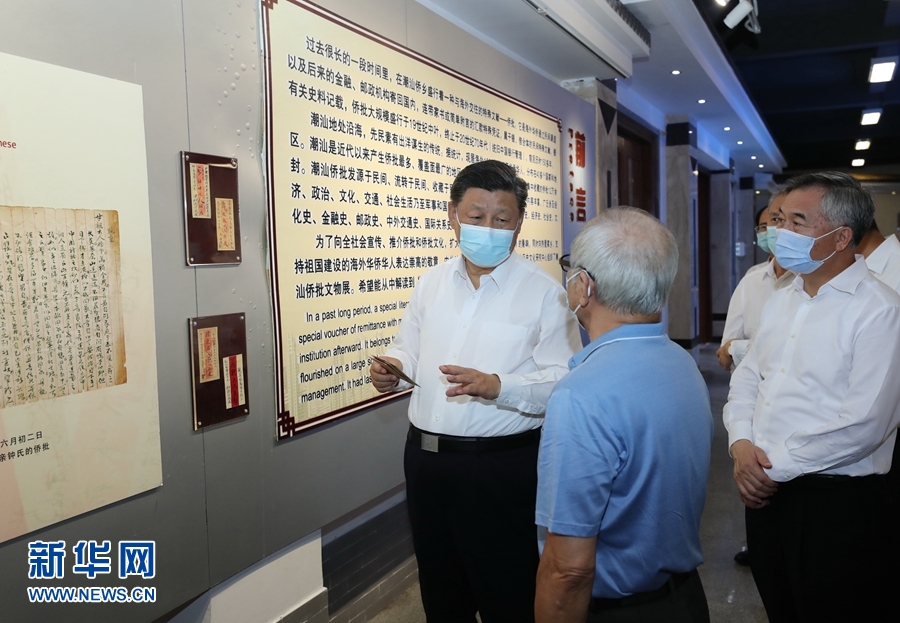 10月12日至13日,中共中央总书记、国家主席、中央军委主席习近平在广东考察。这是13日下午,习近平在汕头市小公园开埠区侨批文物馆考察,了解侨批历史和潮汕华侨文化。 新华社记者 王晔 摄