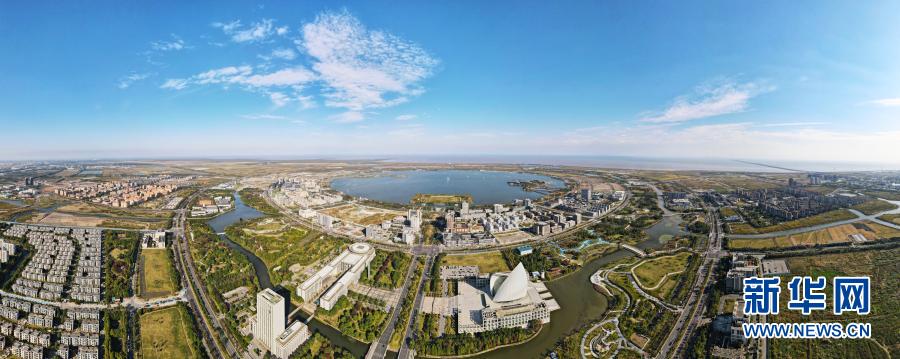 上海浦东新区临港新城滴水湖畔(10月25日摄,无人机全景照片)。新华社记者方喆摄