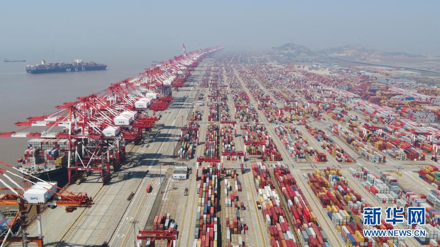上海洋山港集装箱码头(3月18日摄,无人机照片)。新华社记者丁汀摄