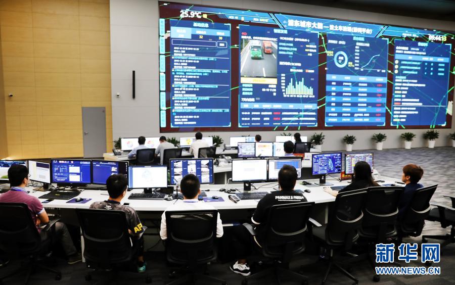 工作人员在上海市浦东新区城市运行管理中心内工作(2019年8月31日摄)。新华社记者方喆摄