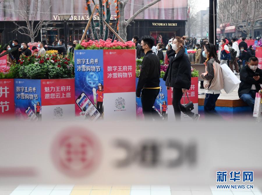 春节期间,“数字王府井冰雪购物节”数字人民币红包试点活动在王府井大街进行(2月12日摄)。新华社记者张晨霖摄