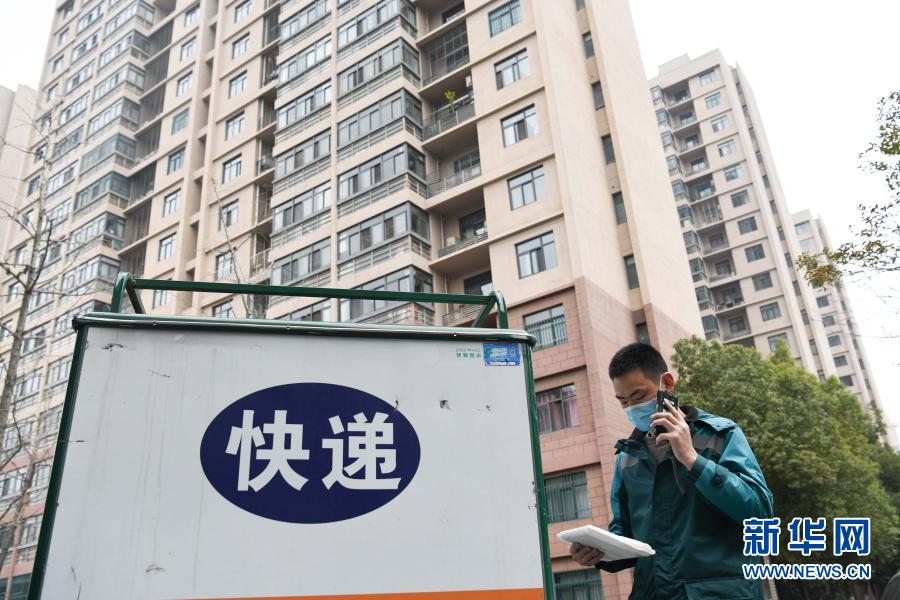 2月11日,中国邮政揽投员刘元元在安徽省合肥市青阳路社区一处居民小区内派送快递。新华社记者张端摄