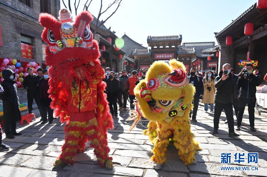 2月16日,游客在山西省忻州古城观看舞狮表演。新华社记者马毅敏摄