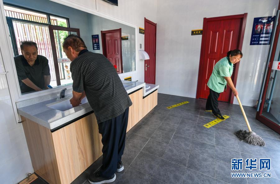 2020年6月13日,市民在河北省永清县一处公厕内洗手。永清县将公厕建设作为创建文明城市的重要工程,在科学布局、高标准建设的基础上,不断提升公共服务水平,方便群众。新华社记者 李晓果 摄