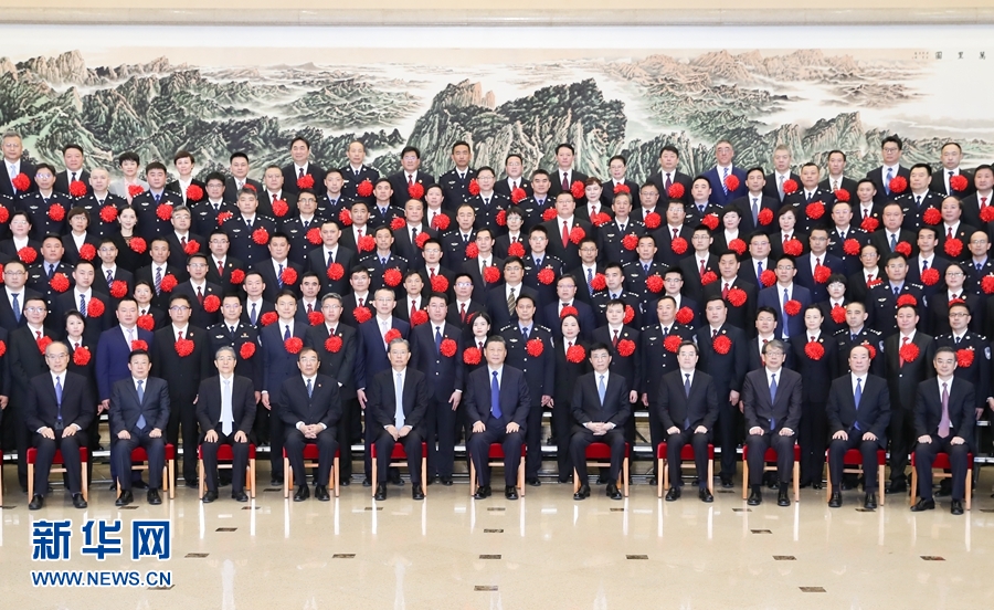 3月29日,党和国家领导人习近平、王沪宁、赵乐际等在北京会见全国扫黑除恶专项斗争总结表彰大会代表。新华社记者黄敬文摄