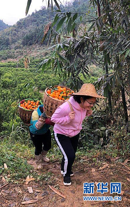 黄文秀与村民一起采摘运输砂糖橘(资料照片)。新华社发