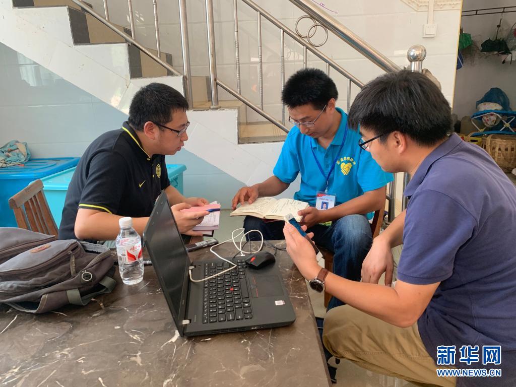 吴应谱(中)在走访贫困户(资料照片)。新华社发