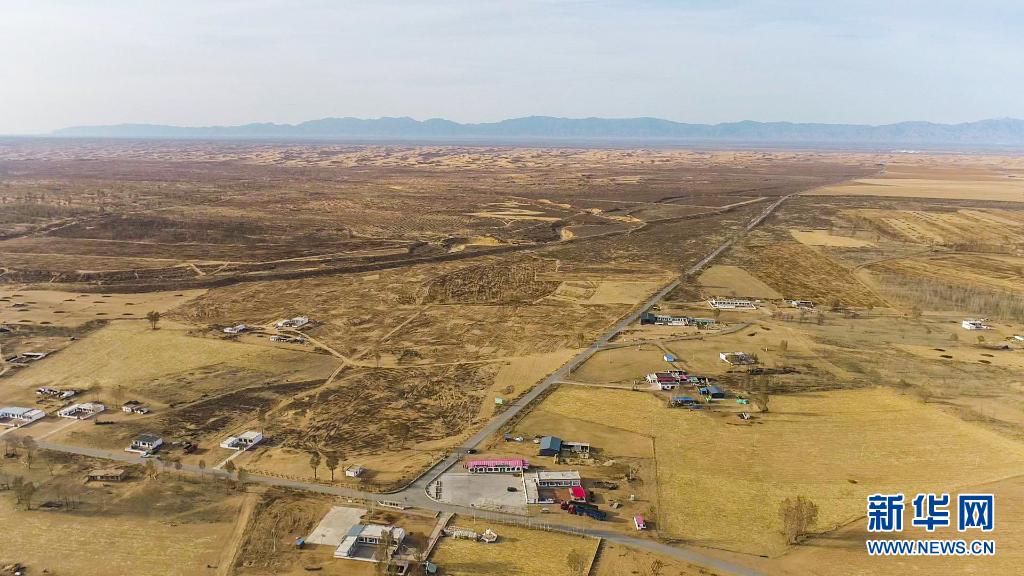 这是位于库布其沙漠边缘的内蒙古达拉特旗官井村(4月3日摄,无人机照片)。新华社记者张晟摄