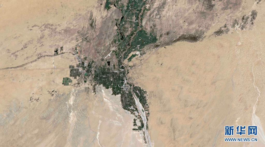 这是新疆且末县河东治沙站的卫星图片。新华社发(新华社卫星新闻实验室、瞭望数据媒体实验室联合供图)