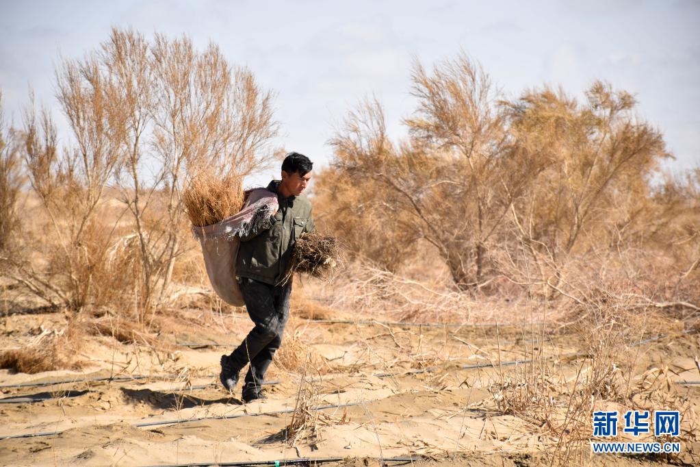 当地百姓从中受益。5年前,在外打工的艾沙江·买买提明回到且末县,承包了乡里的1000亩大芸地,去年采收了100多公斤的大芸种子,价值10多万元。截至2020年底,且末县梭梭林下大芸接种面积达到5.9万亩。