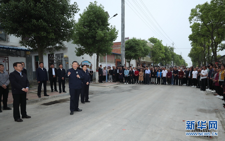 5月14日上午,中共中央总书记、国家主席、中央军委主席习近平在河南省南阳市主持召开推进南水北调后续工程高质量发展座谈会并发表重要讲话。这是座谈会前,习近平于13日在南阳市淅川县九重镇邹庄村考察时,同因工程建设搬迁到这里的村民们亲切交流。新华社记者王晔摄