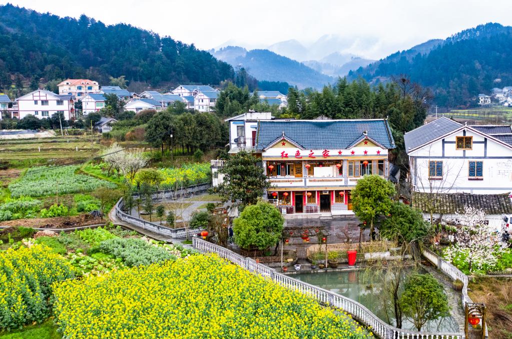 遵义市枫香镇花茂村村民王治强经营的“红色之家”农家乐(2020年2月28日摄,无人机照片)。新华社记者陶亮摄