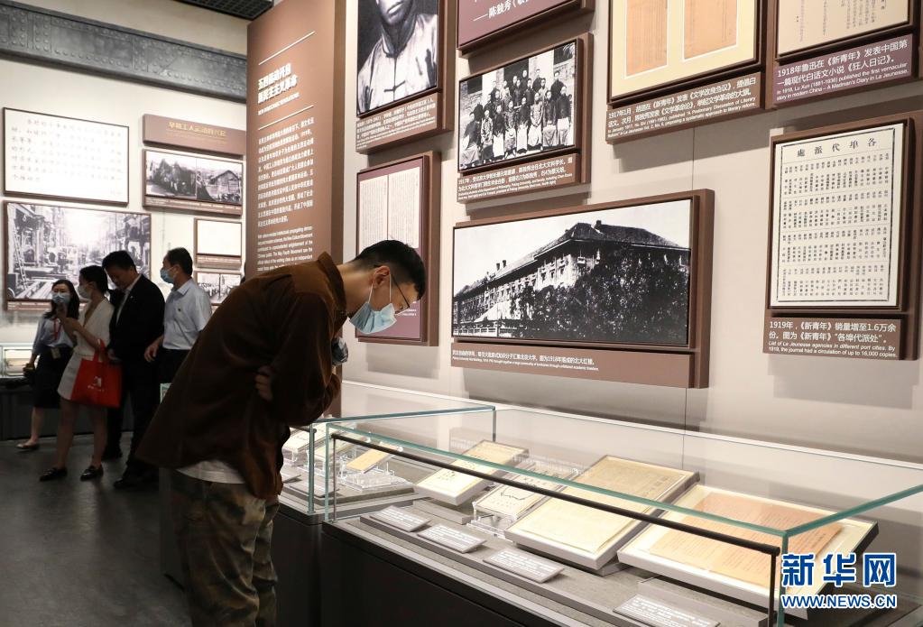 6月3日,参观者在中共一大纪念馆内“伟大的开端——中国共产党创建历史陈列”展览上参观。新华社记者 方喆 摄