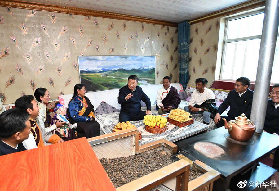 6月8日下午,习近平总书记来到青海省海北藏族自治州刚察县,在青海湖仙女湾听取祁连山和青海湖生态环境保护等情况介绍,并实地察看青海湖环境综合治理、生物多样性保护工作成效。随后,习近平来到沙柳河镇果洛藏贡麻村,看望慰问藏族群众,走进藏族群众家中了解生产生活情况。(文字记者:张晓松、朱基钗;摄影记者:李学仁、谢环驰、燕雁、申宏)